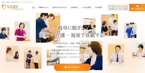 有限会社VERYコーポレーションは、岐阜県を中心に介護施設やサービス付き高齢者向け住宅などを運営しているため、こうした介護分野に特化した仕事相談や紹介を行っています。