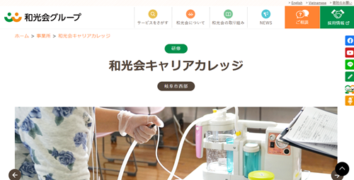 和光会キャリアカレッジは和光会グループが運営するスクール。実務者研修や初任者研修などを行っており、医療や福祉事業を手がける和光会グループのノウハウを活かした介護の知識や技術を学ぶことができます。