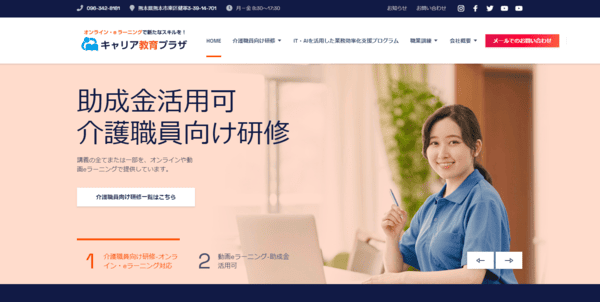 キャリア教育プラザは、介護職員のトレーニングと職業訓練に特化した講座運営が特徴です。eラーニングやオンライン職業訓練なので、全国どこからでも受講が可能ですが、通所での職業訓練も実施しています。